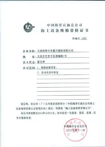 2008年中國海洋石油總公司服務(wù)商資格認(rèn)定